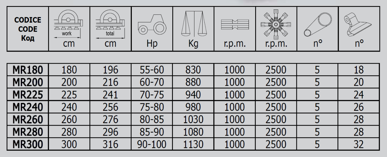 - fű, kukorica szár, burgonya, répa, cserje zúzó, maximum 8 cm átmérőjű akár fás szárú növényzet aprítására is alkalmas