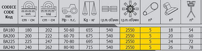 - 120-140-160-180-200-225-240 es munkaszélesség